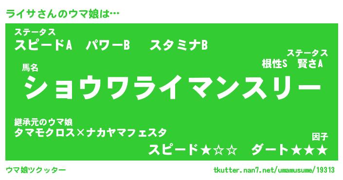 | 意味不明あだ名 | 『ペロリンライサ』『ライサフォーエバー』 |