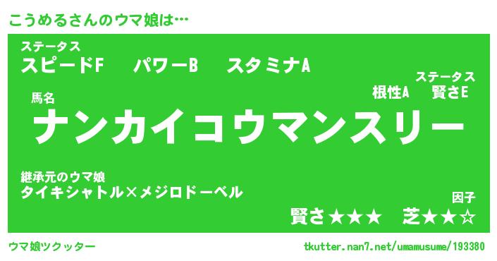 | 女子向けラノベタイトル風あだ名 | 『こうめる姫と円卓の騎士』 |