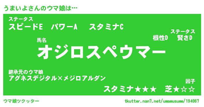 | ファンタジー風あだ名 | 『ウマフェル』『エターナルウマイヨー』 |