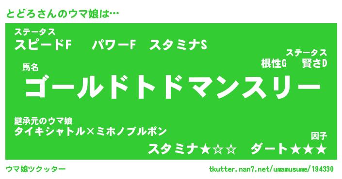 | ヘコむあだ名 | 『とどっふぃ~』『つくし』『とどお』 |