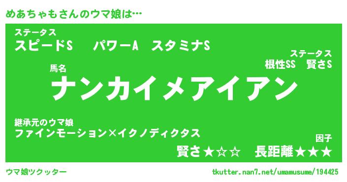 | ヒーロー風カッコイイあだ名 | 『スーパーメアチャモ』『黄金騎士メア』 |