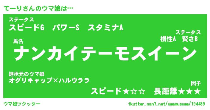 | 意味不明あだ名 | 『ペロリンてーり』『てーりフォーエバー』 |
