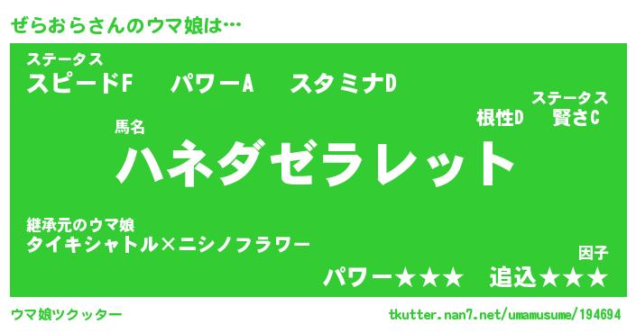 | ポケモン風あだ名 | 『ゼラチュウ』『ゼラオダネ』 |