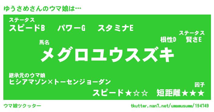 | 意味不明あだ名 | 『ペロリンゆうさめ』『永久保存ゆうさめ』 |