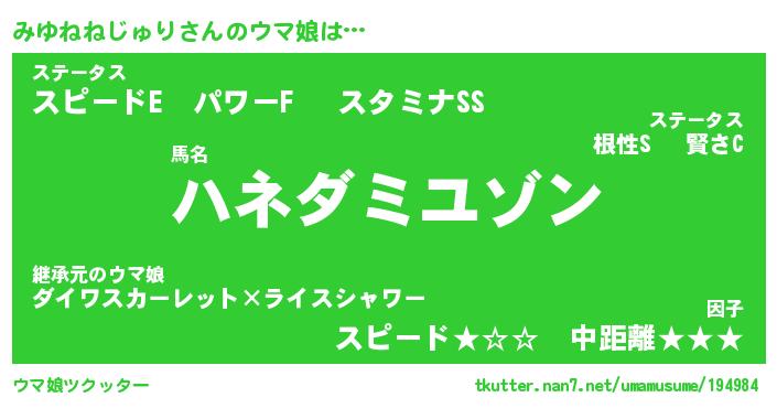 | 欧米人風あだ名 | 『マイケルみゆねねじゅり』 |