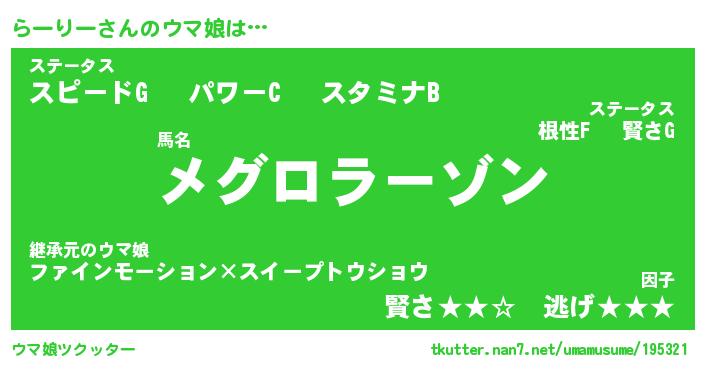 | 意味不明あだ名 | 『ペロリンらーりー』『永久保存らーりー』 |