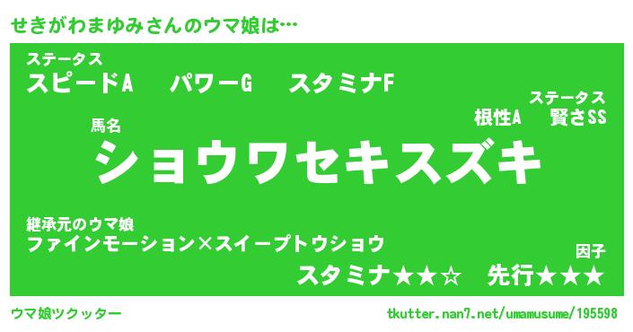 | 伝説のあだ名 | 『不死鳥のスナイパーせきがわまゆみ』 |