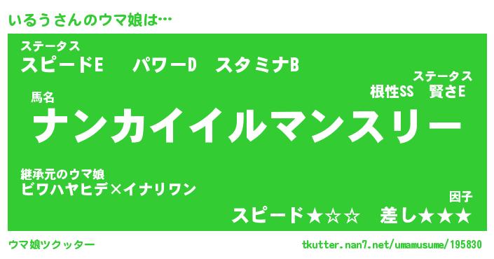 | ファンタジー風あだ名 | 『イルフェル』『エターナルイルウー』 |
