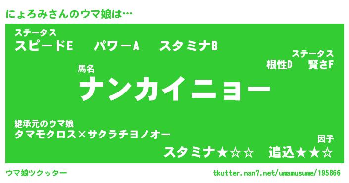 | ポケモン風あだ名 | 『ニョチュウ』『ニョロダネ』 |