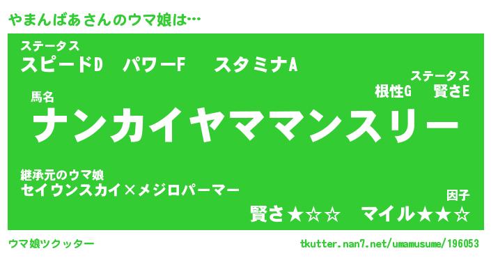 | 欧米人風あだ名 | 『マイケルやまんばあ』 |