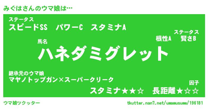 | ヒーロー風カッコイイあだ名 | 『スーパーミグハ』『ウルトラみぐはマン』 |