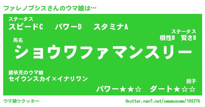| ポケモン風あだ名 | 『ファチュウ』『ファレダネ』 |