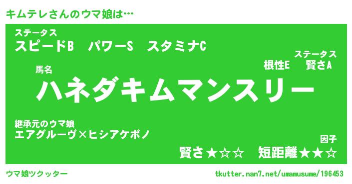 | 意味不明あだ名 | 『ペロリンキムテレ』『永久保存キムテレ』 |