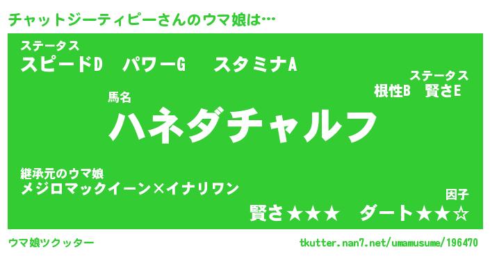 | 伝説のあだ名 | 『封印されしスナイパーチャットジーティピー』 |