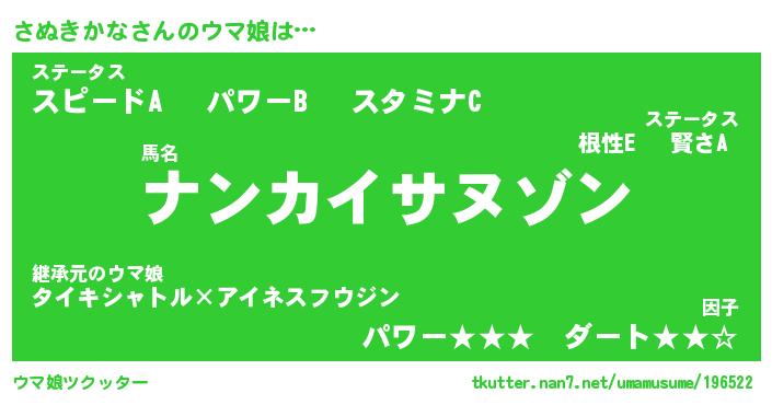 | ポケモン風あだ名 | 『サヌチュウ』『サヌキダネ』 |