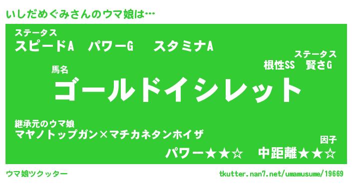 | ヒーロー風カッコイイあだ名 | 『スーパーイシダメグミ』『黄金騎士イシ』 |