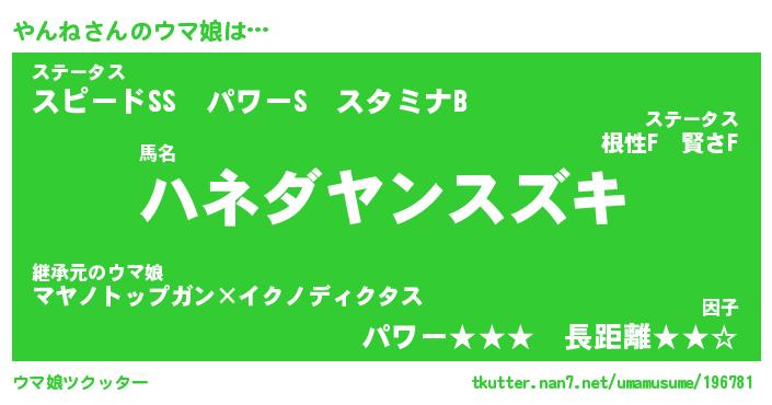 | ポケモン風あだ名 | 『ヤンチュウ』『ヤンネダネ』 |