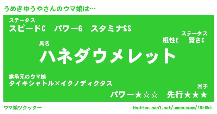 | 自動車の名前っぽいあだ名 | 『ウメティマ』『ウクア』『ウント』 |