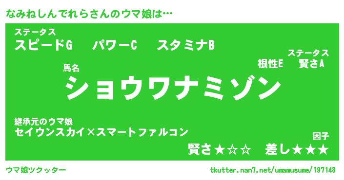 | 意味不明あだ名 | 『ペロリンなみねしんでれら』 |