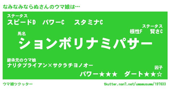 | 自動車の名前っぽいあだ名 | 『ナミティマ』『ナスラー』『ナンR』 |