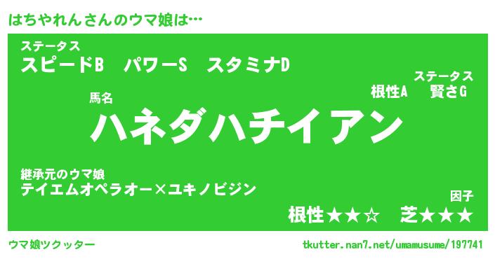 | 自動車の名前っぽいあだ名 | 『ハチティマ』『ハクア』『ハント』 |
