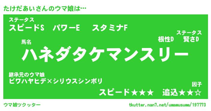 | ファンタジー風あだ名 | 『タケフェル』『エターナルタケダアイー』 |