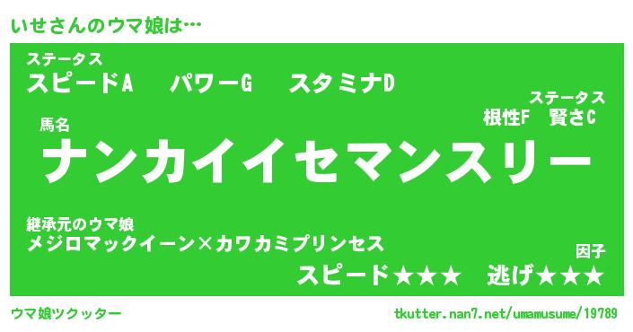 | ポケモン風あだ名 | 『イセチュウ』『イセダネ』『ヒイセ』 |