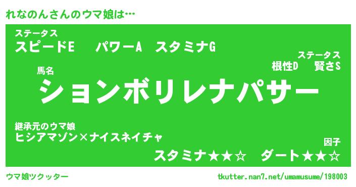 | 自動車の名前っぽいあだ名 | 『レナティマ』『レスラー』『レンR』 |