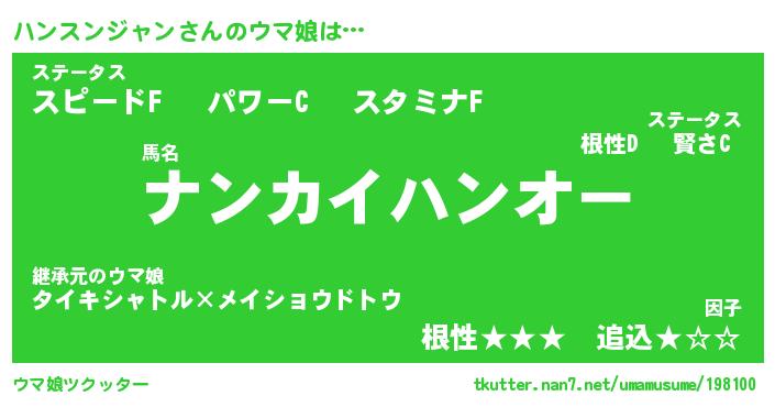 | ポケモン風あだ名 | 『ハンチュウ』『ハンスダネ』 |