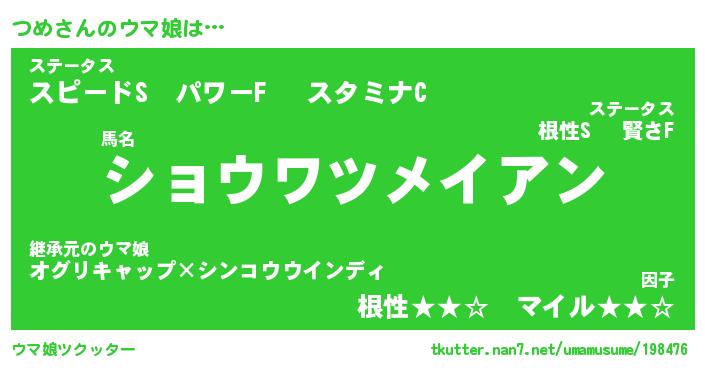 | ファンタジー風あだ名 | 『ツメフェル』『エターナルツメー』 |