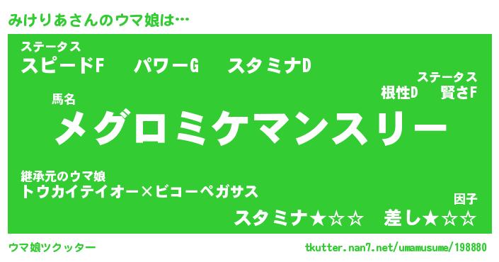 | 欧米人風あだ名 | 『マイケルみけりあ』『ウサインみけりあ』 |