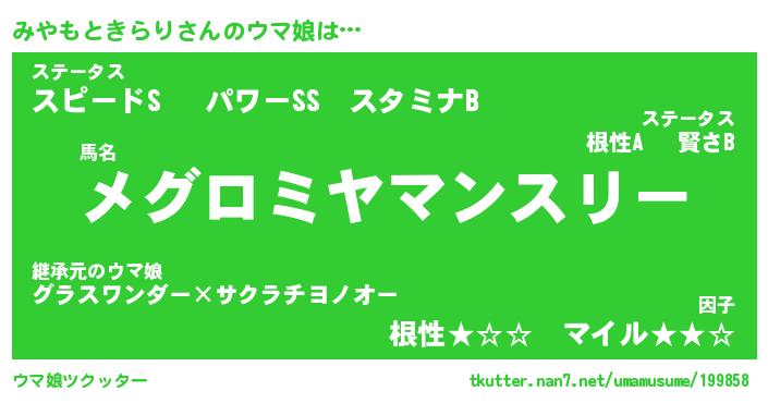 | ヘコむあだ名 | 『みやにゅー』『つくし』『みや太郎』 |