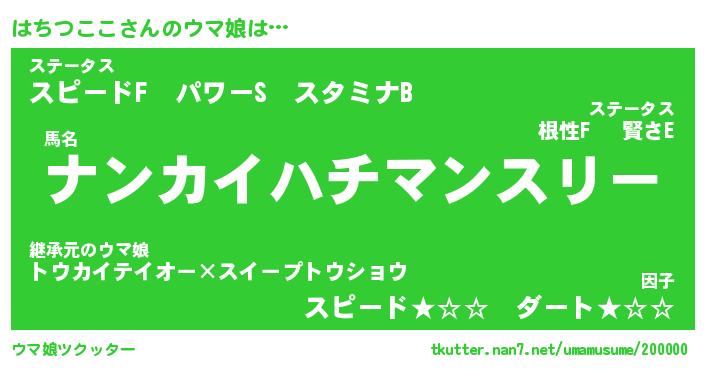| ヒーロー風カッコイイあだ名 | 『スーパーハチツココ』『天弓騎士ハチ』 |