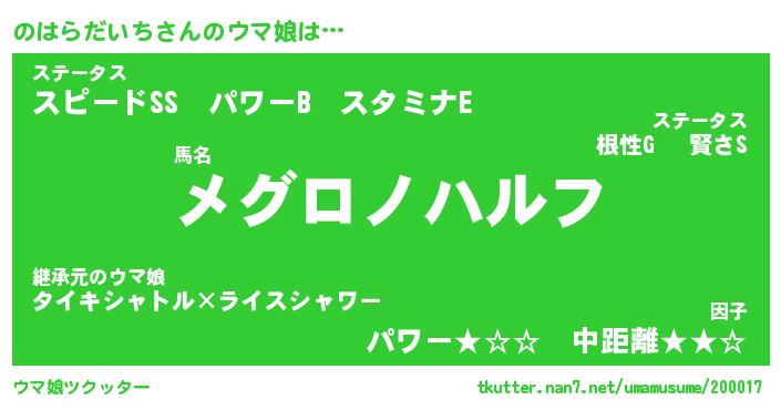 | 意味不明あだ名 | 『ペロリンのはらだいち』 |