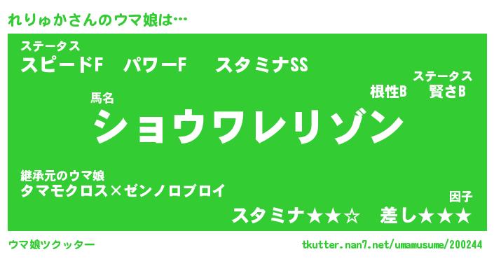 | 伝説のあだ名 | 『不死鳥のスナイパーれりゅか』 |