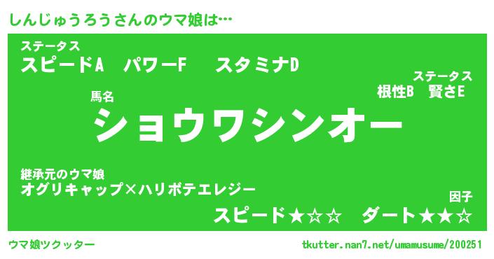 | 意味不明あだ名 | 『ペロリンしんじゅうろう』 |