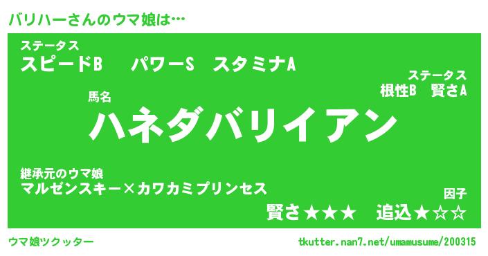 ヒーロー風カッコイイあだ名 | 『スーパーバリハー』『暗黒騎士バリ』 |
