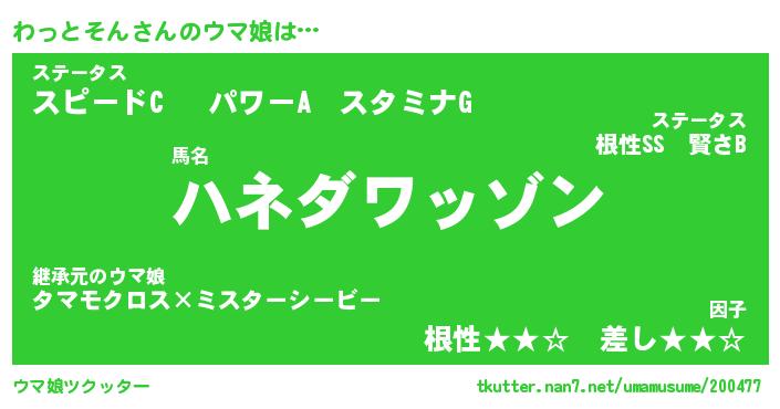 | ポケモン風あだ名 | 『ワッチュウ』『ワットダネ』 |