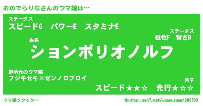 | 意味不明あだ名 | 『ペロリンおのでらりな』 |