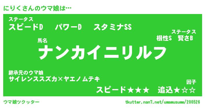| ファンタジー風あだ名 | 『ニリフェル』『エターナルニリクー』 |