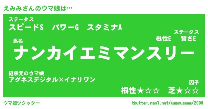 | 伝説のあだ名 | 『不死鳥の竜騎士えみみ』 |