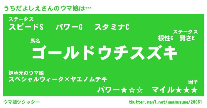 | ポケモン風あだ名 | 『ウチチュウ』『ウチダダネ』 |