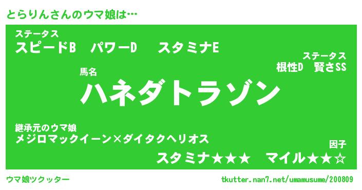 | 意味不明あだ名 | 『ペロリンとらりん』『永久保存とらりん』 |