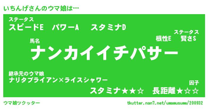 | 欧米人風あだ名 | 『マイケルいちんげ』『ウサインいちんげ』 |