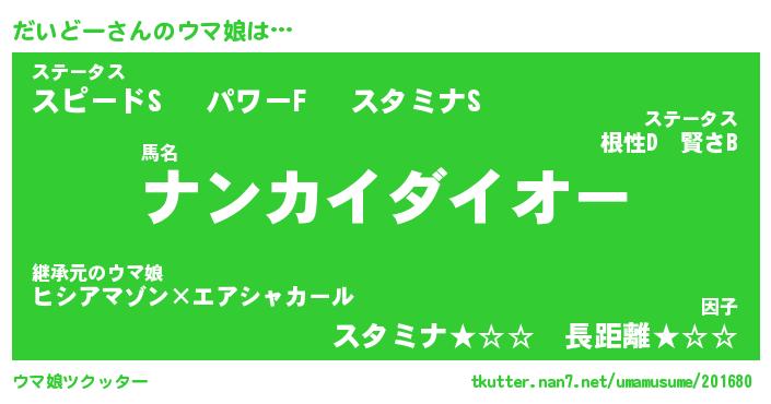 | 意味不明あだ名 | 『ペロリンだいどー』『永久保存だいどー』 |