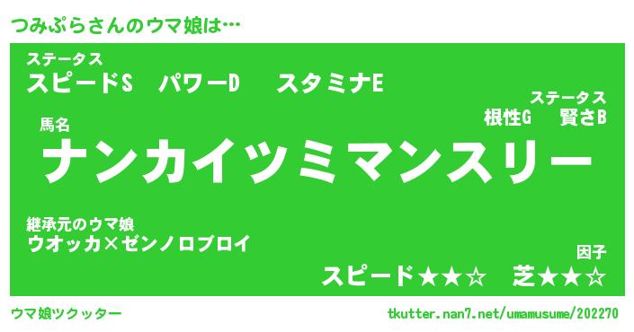 | ファンタジー風あだ名 | 『ツミフェル』『エターナルツミプラー』 |