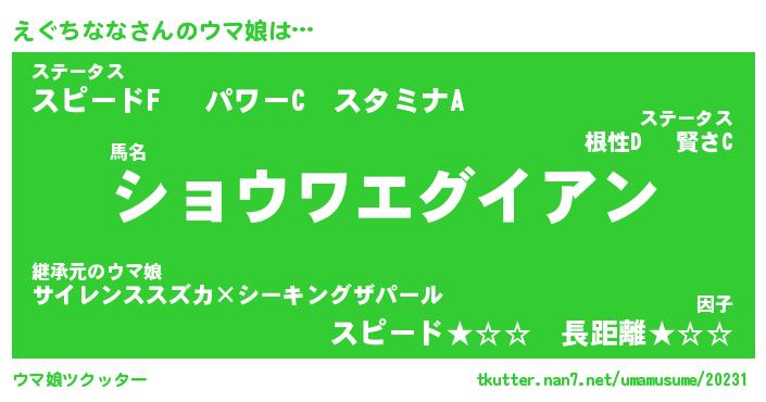 | 欧米人風あだ名 | 『マイケルえぐちなな』 |