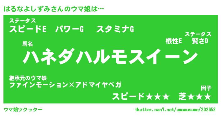 | 自動車の名前っぽいあだ名 | 『ハルティマ』『ハクア』『ハント』 |