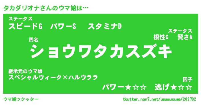| ヒーロー風カッコイイあだ名 | 『スーパータカダリオナ』『幻影騎士タカ』 |