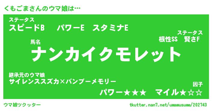 | 意味不明あだ名 | 『ペロリンくもごま』『永久保存くもごま』 |